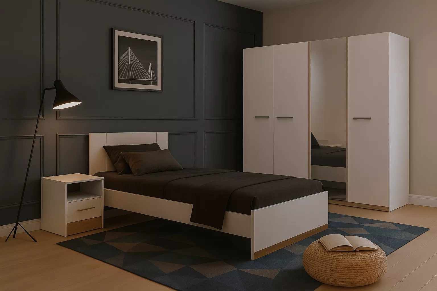 Matt White & Kronberg Oak, Wooden Legs, Width: 90cm, Height: 190/200cm.