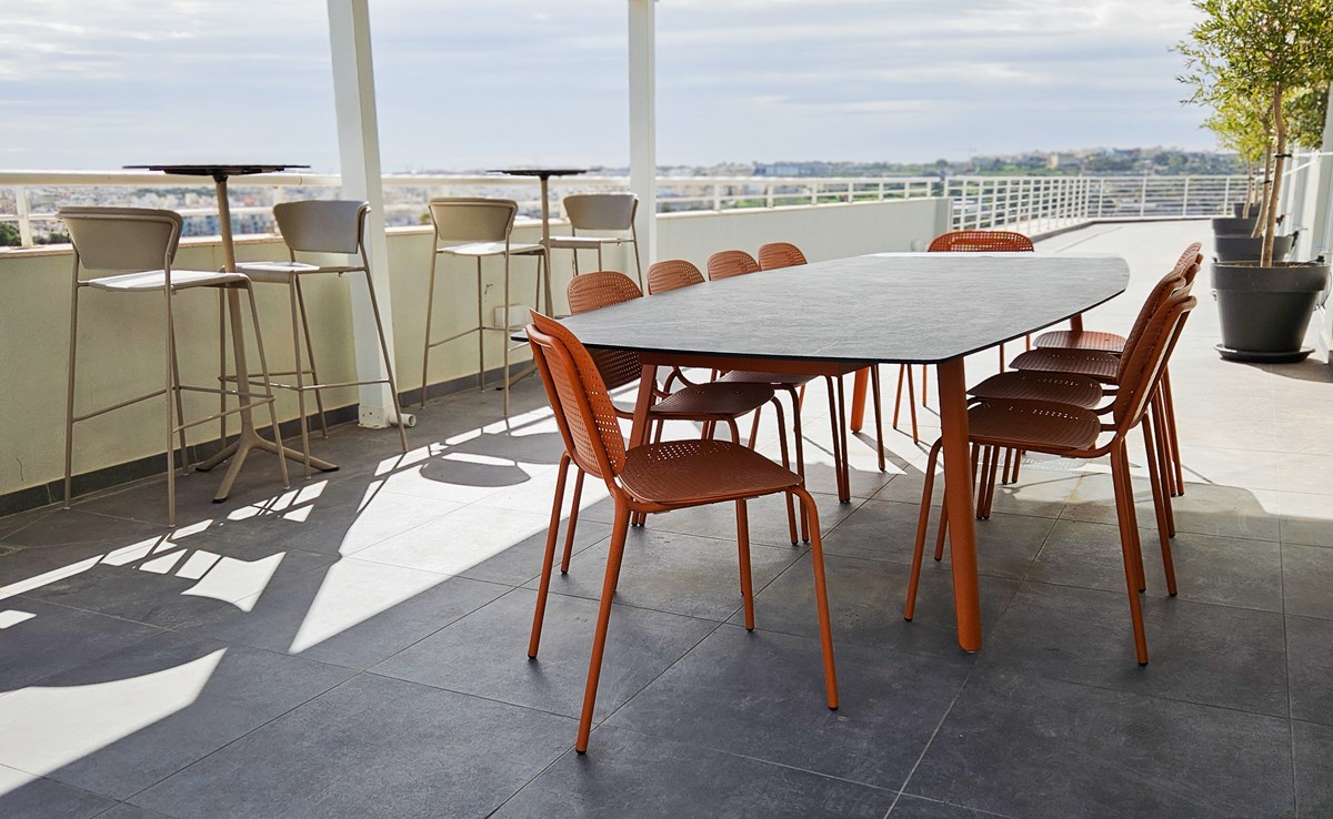 We’ve enhanced the terrace at Alter Domus Malta with outdoor furniture, transforming it into a comfortable and welcoming extension of their office environment. Chairs and tables in a variety of colours, materials and finishes were carefully selected to achieve the right balance of durability, comfort and clean, simple design.