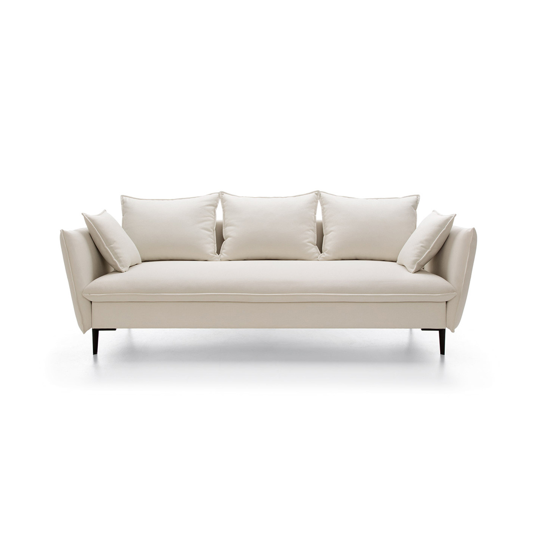 Upgrade your living space with this sleek 3-seater sofa bed in crisp white. Designed for both comfort and versatility, it easily transforms from a spacious sofa into a full size bed, providing ample sleeping space for guests or family.