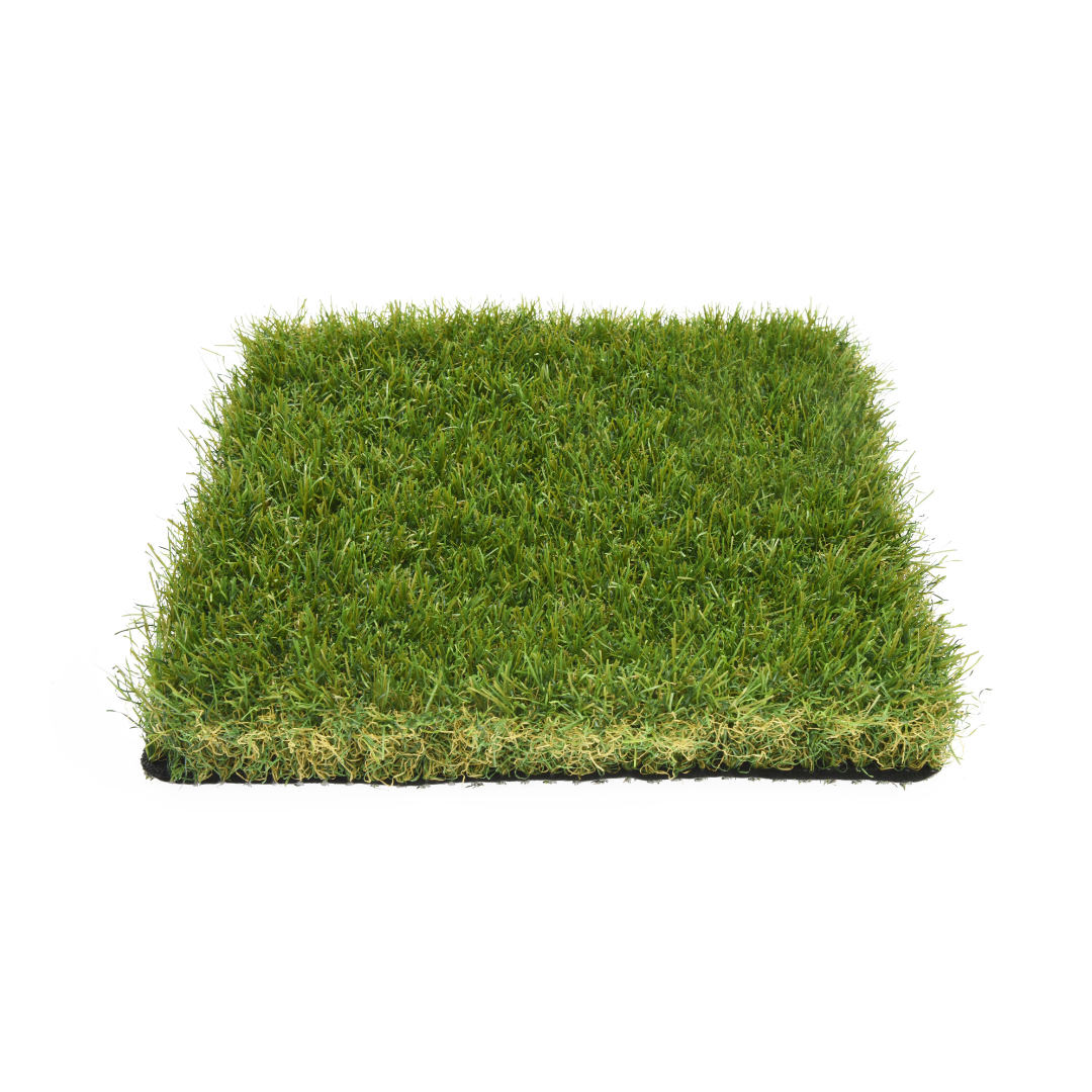 Lush 45mm artificial grass with soft monofilament pile, vibrant bi-colour tones, and durable latex backing. Perfect for realistic, low-maintenance outdoor spaces.