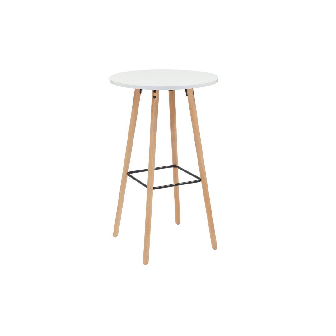 Elevate your dining or bar space with this minimalist white bar table, designed for both style and practicality. The robust MDF top provides a clean, durable surface, while the natural beech wood legs add a touch of warmth and sophistication.