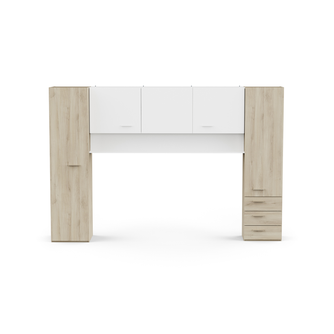Maximise your bedroom storage with this elegant bed bridge, combining Kronberg oak and matt white finishes for a modern and adaptable look. Its generous design provides seamless integration around your bed, creating a sleek, organised space.