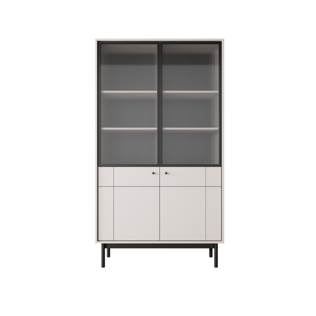 Upgrade your living space with this elegant bookshelf in a soft cashmere finish. Featuring two doors and a sleek glass front, it beautifully displays your favourite books and décor while keeping them protected and dust free. The sophisticated design blends seamlessly with both modern and classic interiors.
