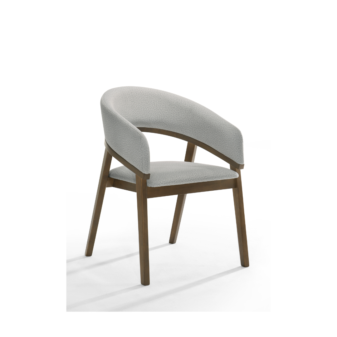 Elegant chair in walnut finish featuring a cushioned LVL and foam backrest, and an MDF and foam seat. Compact, stylish, and comfortable ideal for modern interiors.