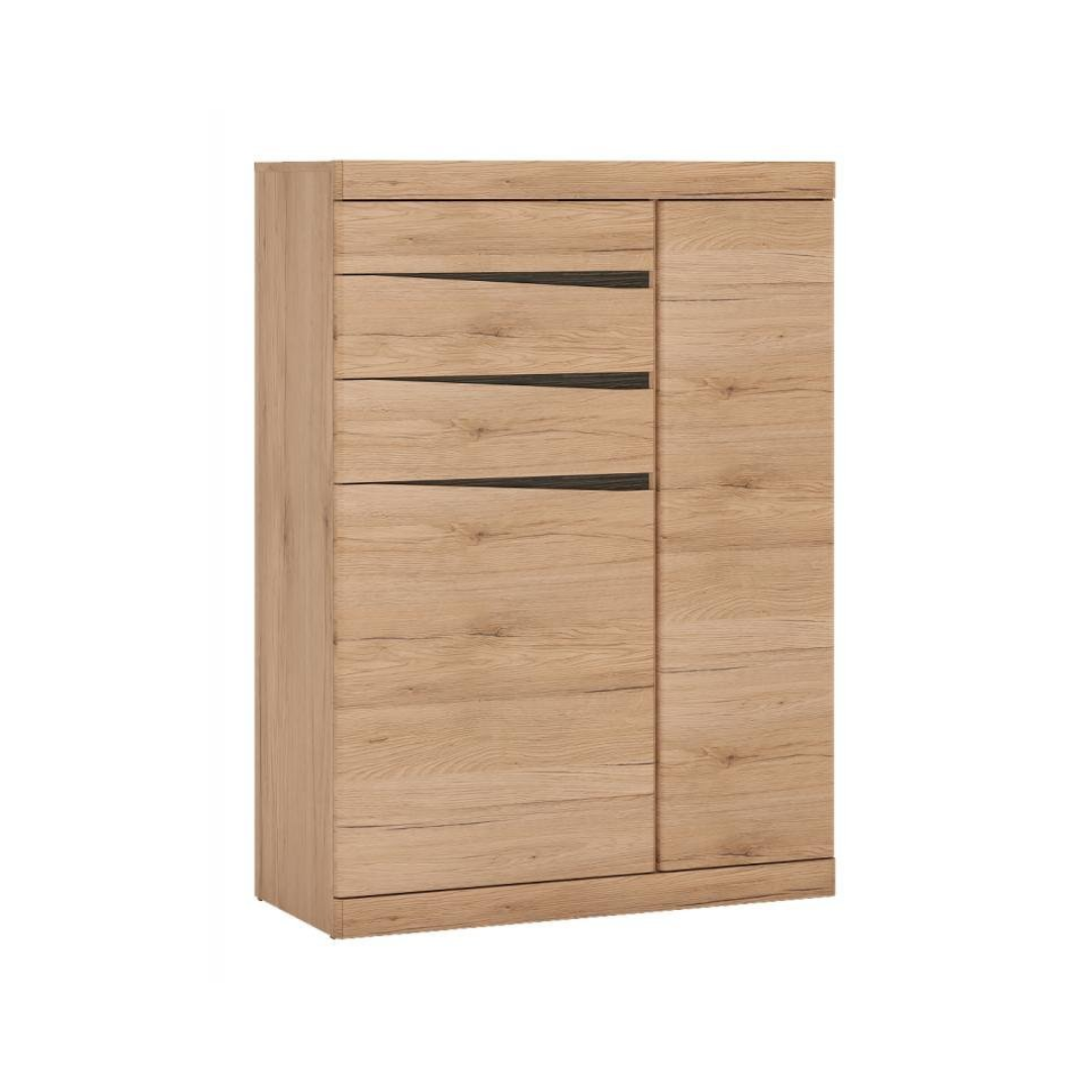 This versatile chest of drawers, finished in elegant San Remo and Arusha Wenge, is designed to maximise storage in compact interiors. Its understated style and distinctive under-milled handles complement both living and dining rooms, blending seamlessly into contemporary decors.