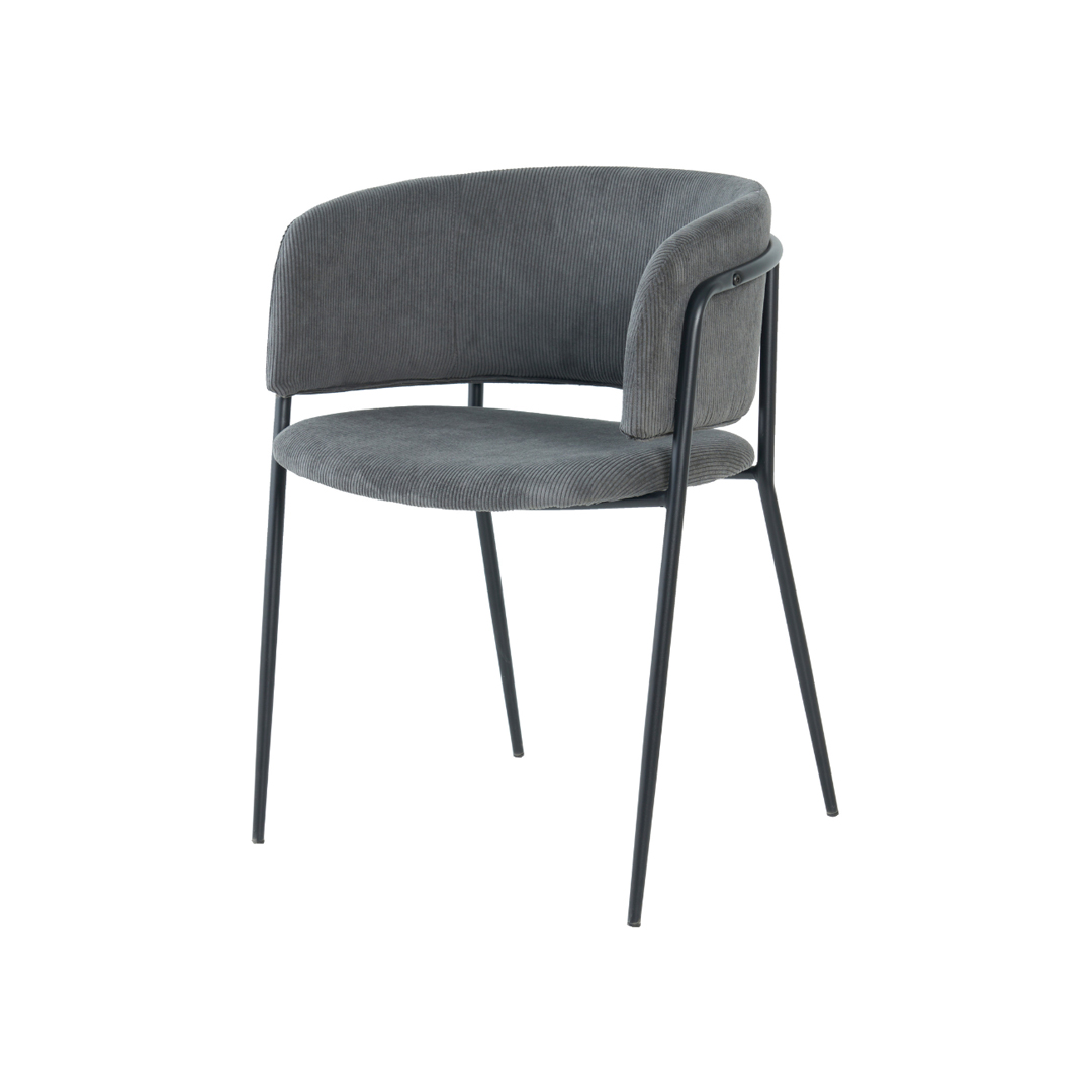 Elevate your space with this stylish Dark Grey Dining Chair. Featuring a comfortable corduroy cushion and sleek black powder-coated metal tube legs, it offers both durability and modern design for any dining area.