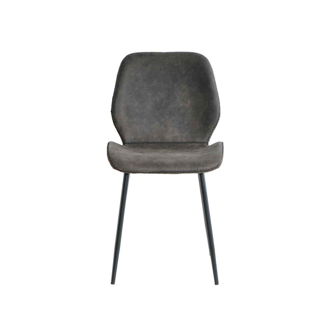 Elevate your dining space with this elegant dark grey microfiber chair. Featuring a durable Cowboy microfiber cushion and sleek black metal legs, it offers comfort, style, and versatility for any modern dining room or kitchen.