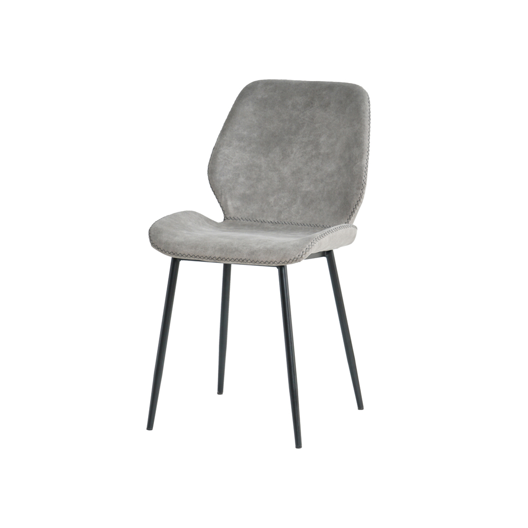 Add modern elegance to your dining area with this light grey microfiber chair. Offering comfort with its soft cushion and durability with sleek black metal legs, it’s perfect for any contemporary dining room or kitchen.
