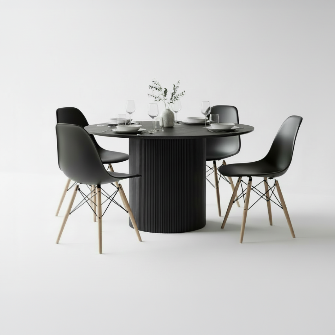 Accompanied by six sleek dining chairs, each crafted with a durable PP seat and elegant beech wood legs, this set combines comfort, style, and practicality. Lightweight and easy to assemble, these chairs are designed for versatility, making them suitable for dining rooms, kitchens, or restaurants.