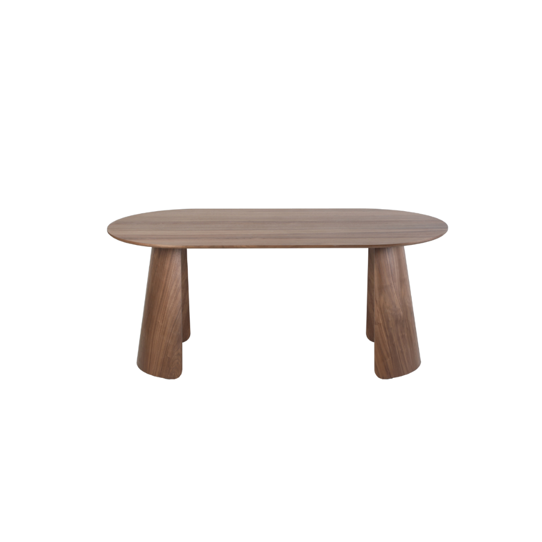 Upgrade your dining experience with this elegant dining table, featuring a rich walnut veneer finish that adds warmth and sophistication to any space. Its spacious tabletop easily accommodates family gatherings or dinner parties, making it both practical and stylish.