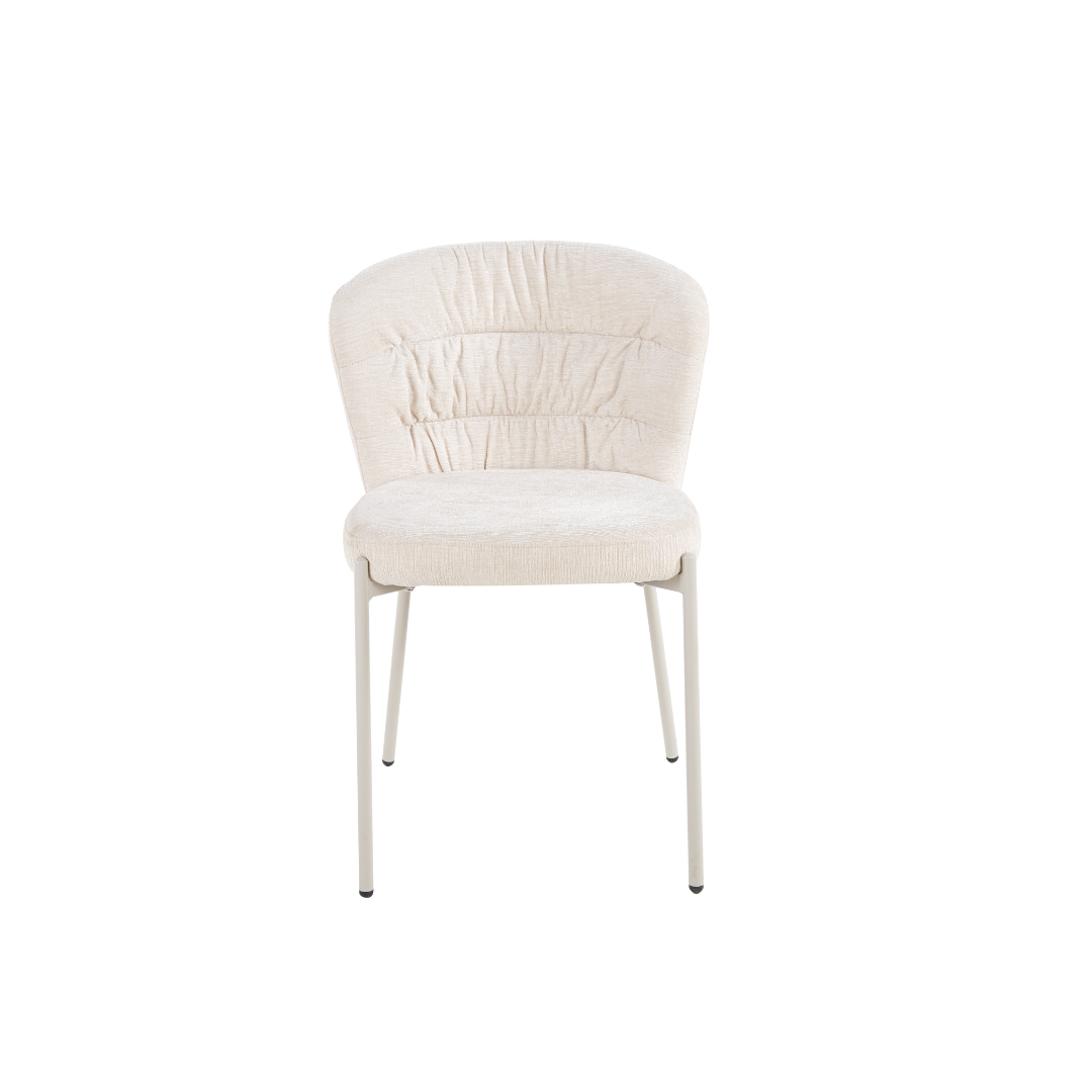 Beige dining chair with sturdy KD metal legs, robust 0.12 cm metal frame, and comfortable proportions perfect for stylish, modern dining spaces.