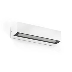 This white wall lamp with LED technology features IP65 that gives high protection against rain and solids. The light is projected 90° to one side only.