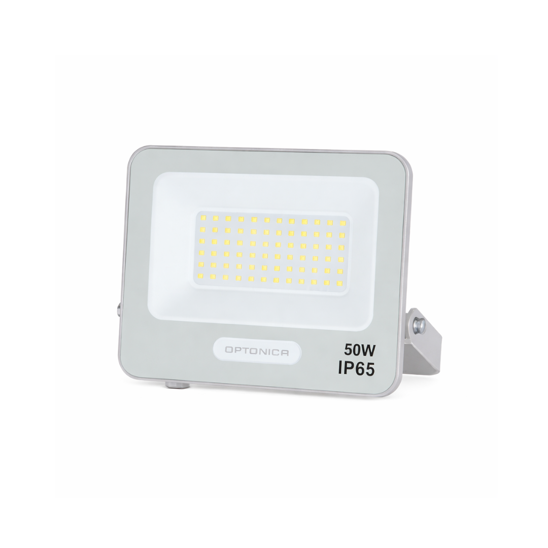 Durable 50W LED floodlight with 4500 lumens, warm white 3000K light, IP65 weatherproof rating, and robust SMD technology. Ideal for outdoor lighting with instant start and energy efficiency.