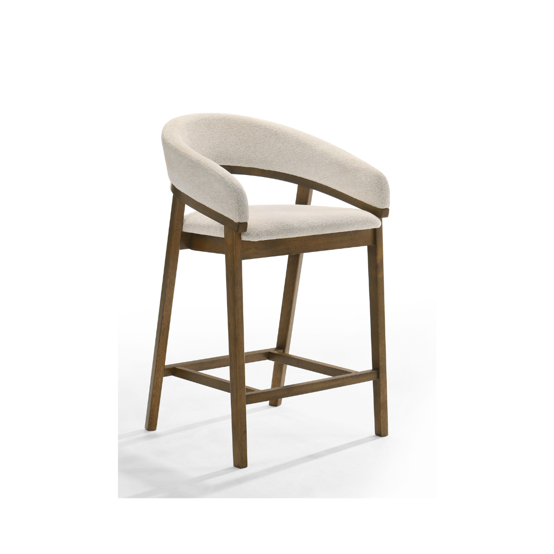 Sleek walnut barstool with supportive backrest and cushioned seat. Modern design, durable construction, and comfortable foam padding—perfect for stylish kitchen counters or bar areas.