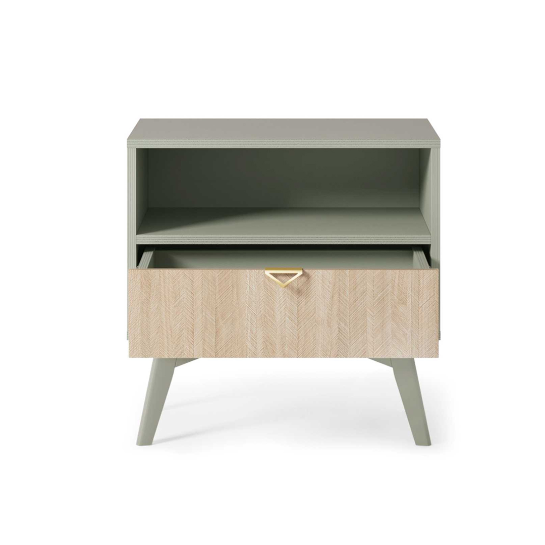Nightstand 1Shelf 1Drawer - Herringbone Scandi & Eucalyptus