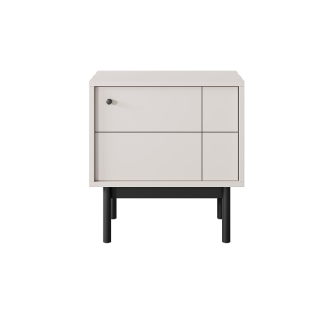 Elegant nightstand in a soft cashmere finish with a sleek, contemporary silhouette. Offers practical storage with a spacious drawer and shelf, perfect for keeping essentials organised by your bedside.