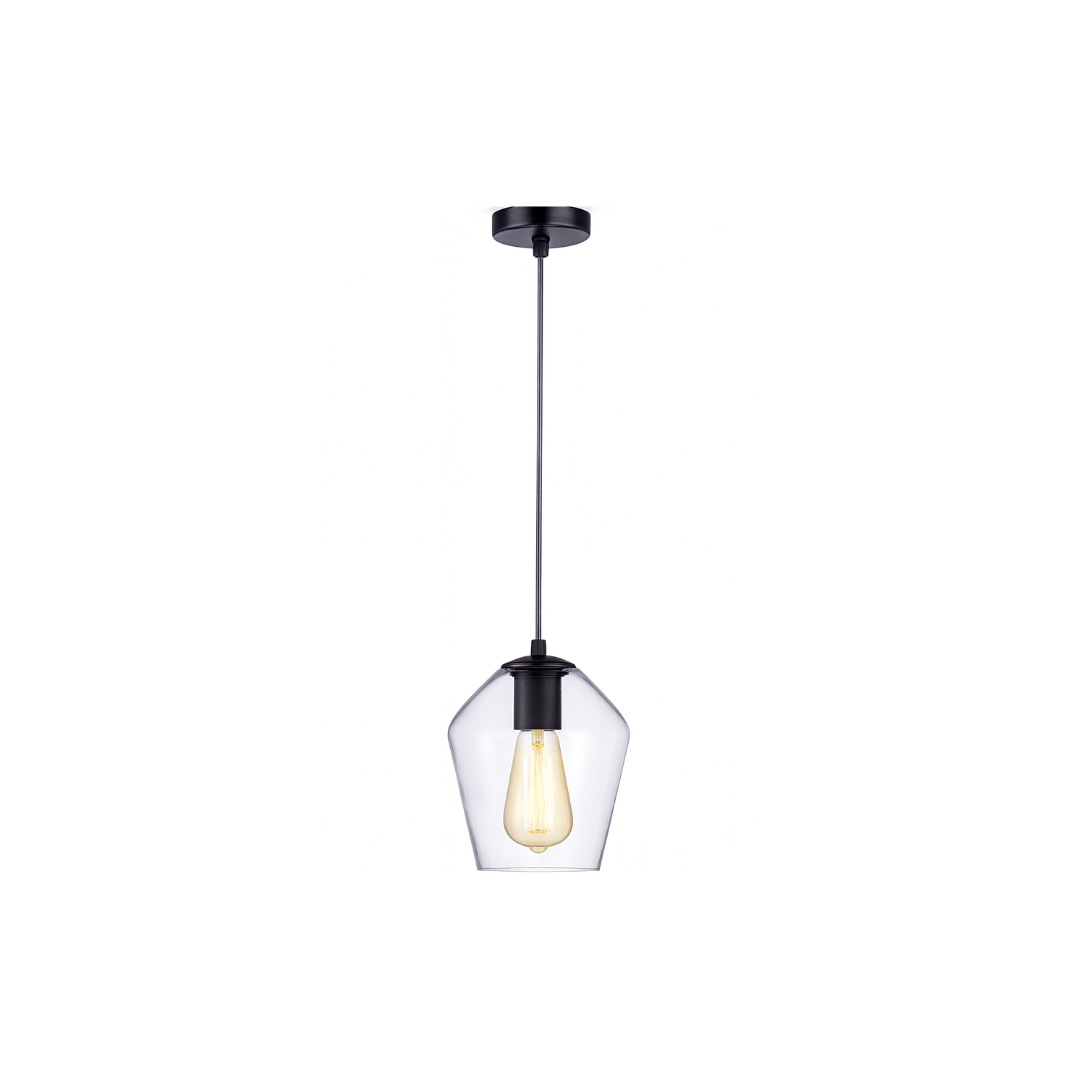 Enhance your interior with this striking pendant lamp, crafted from a sophisticated blend of iron and glass in a classic black finish. Its minimalist design delivers timeless style that suits both modern and traditional décors.