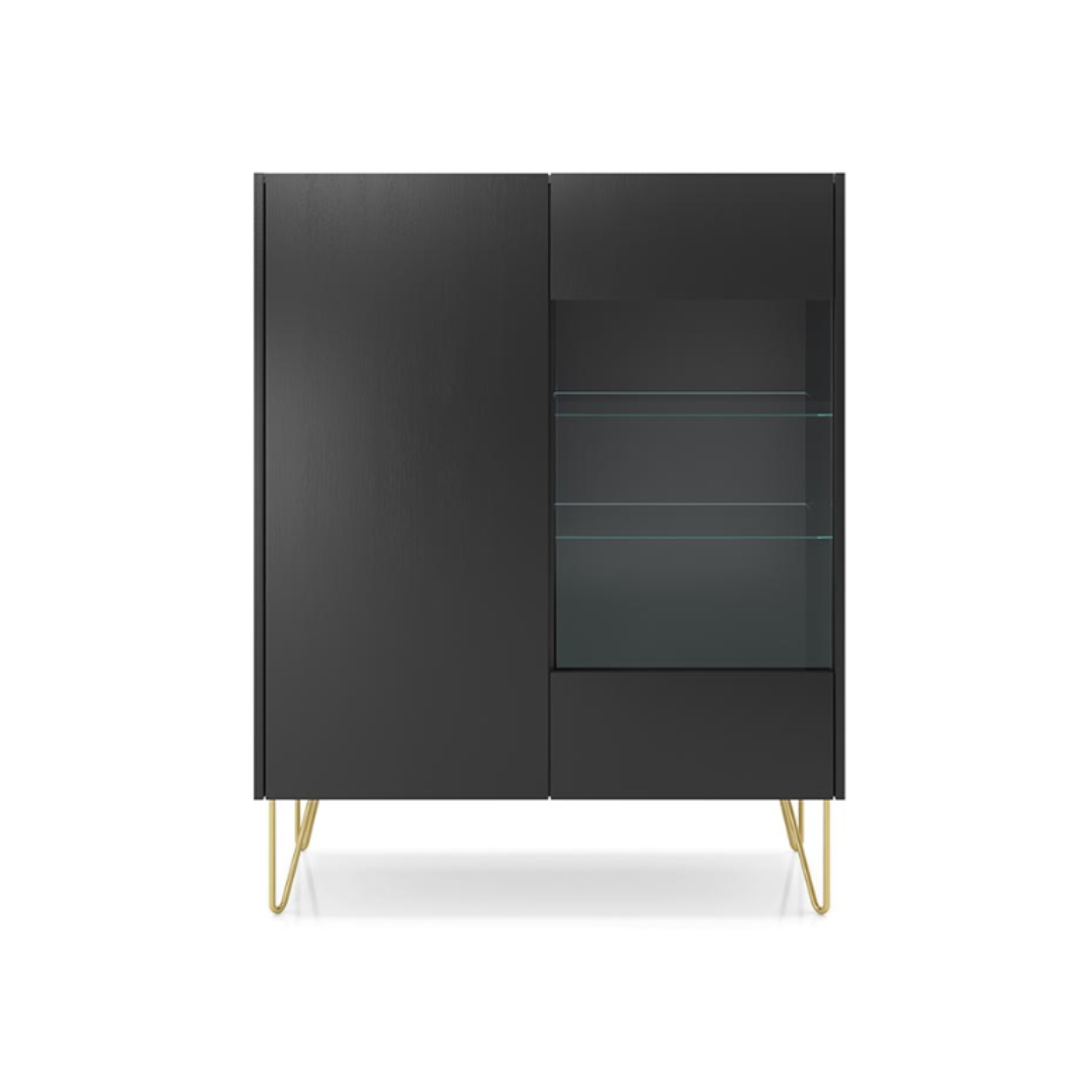Elevate your interior with this sophisticated black showcase cabinet. Designed with a modern silhouette, it features ample shelving to beautifully display your favourite décor, collectibles, or books, making it a versatile addition to any room.