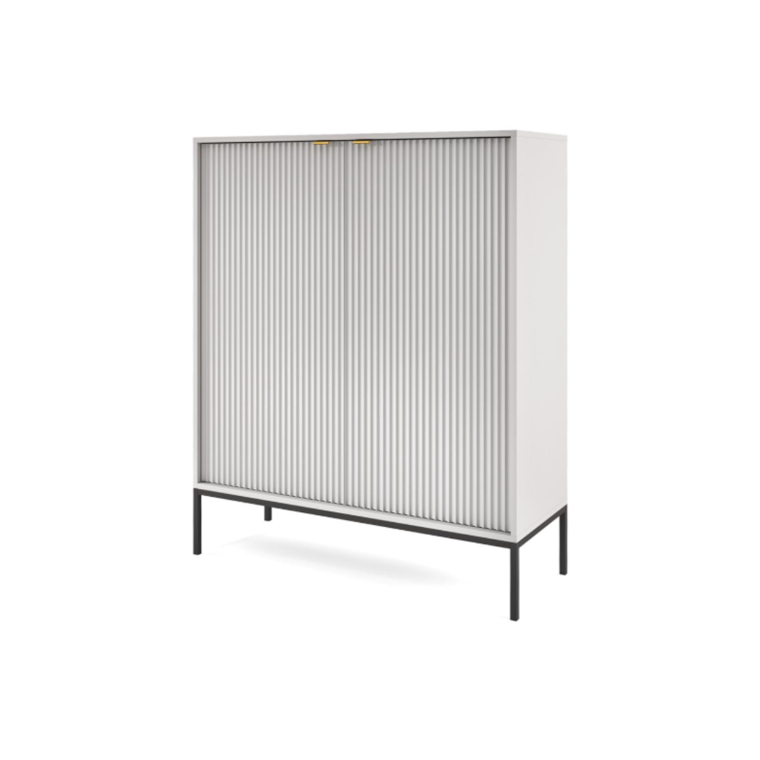 Enhance your interior with this modern grey sideboard featuring two generously sized doors. Its minimalist silhouette and smooth finish create a contemporary look that complements a variety of spaces, from dining rooms to hallways and living areas.