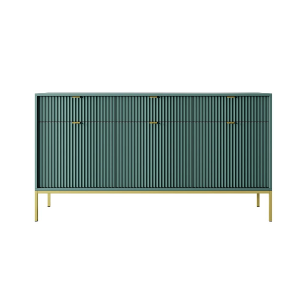 Add a fresh pop of colour and practical storage to your home with this green sideboard, featuring three doors and three drawers. Its sleek silhouette blends seamlessly with modern and classic interiors, offering versatile appeal.