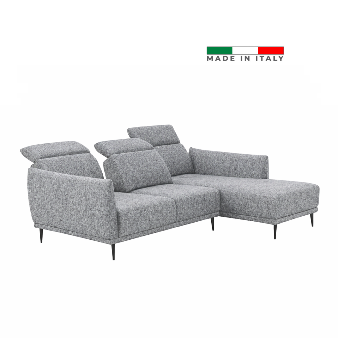 Upgrade your living space with this stylish 3-seater sofa set featuring a left lateral element and a right-facing chaise longue. Upholstered in elegant grey fabric, this sofa offers both comfort and modern sophistication, seamlessly fitting into a variety of interiors.