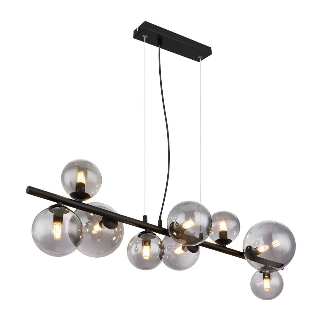 The GALILEO Suspension Light is a striking statement piece that brings a touch of modern sophistication to any space. Featuring a series of smoked glass lampshades in the form of asymmetrically arranged smoked spheres, this pendant light creates a captivating visual appeal. The mirror-like surface of the glass beautifully reflects its surroundings, transforming your interior into a dynamic design focal point.