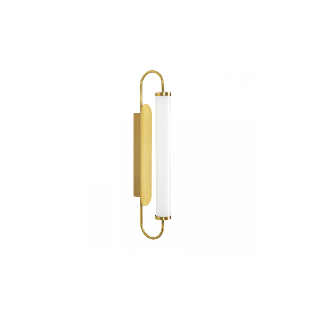 Elegant brushed brass wall LED light with opal glass, 10W power, 3000K warm white, 890Lm output, and Triac dimming. Perfect for refined, modern interiors.